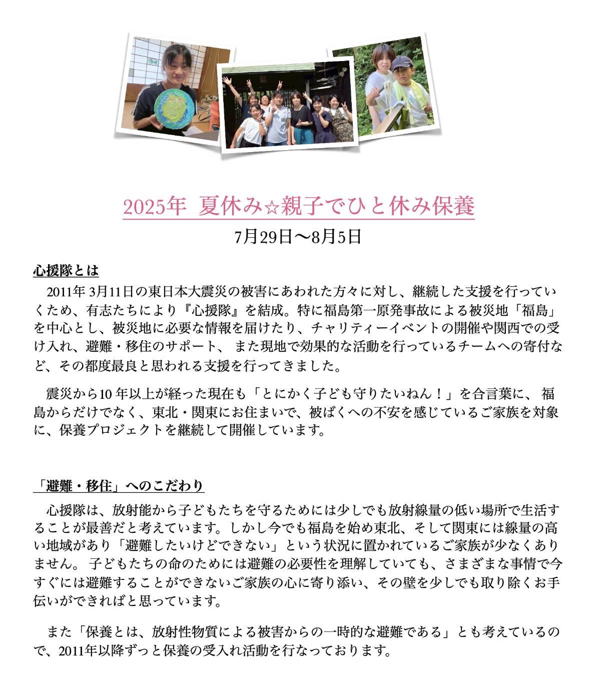 その後も移住希望者の移住先での生活支援をしながら、子どもたちの長期休暇にあわせた『保養プロジェクト』を実施し現在に至る。
